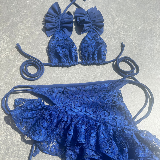 NAVY RUFFLE LACE KINI